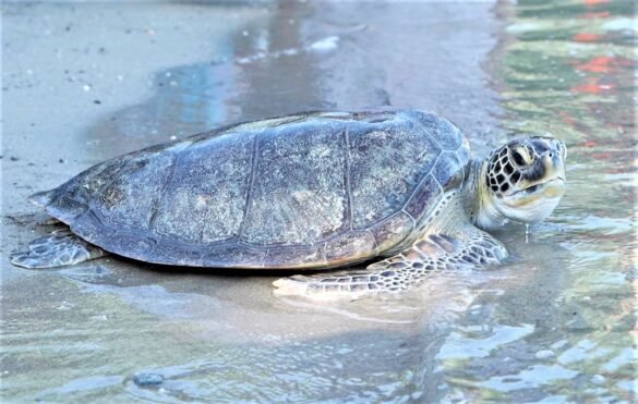 Liberación de la tortuga curada de fibropapilomatosis.