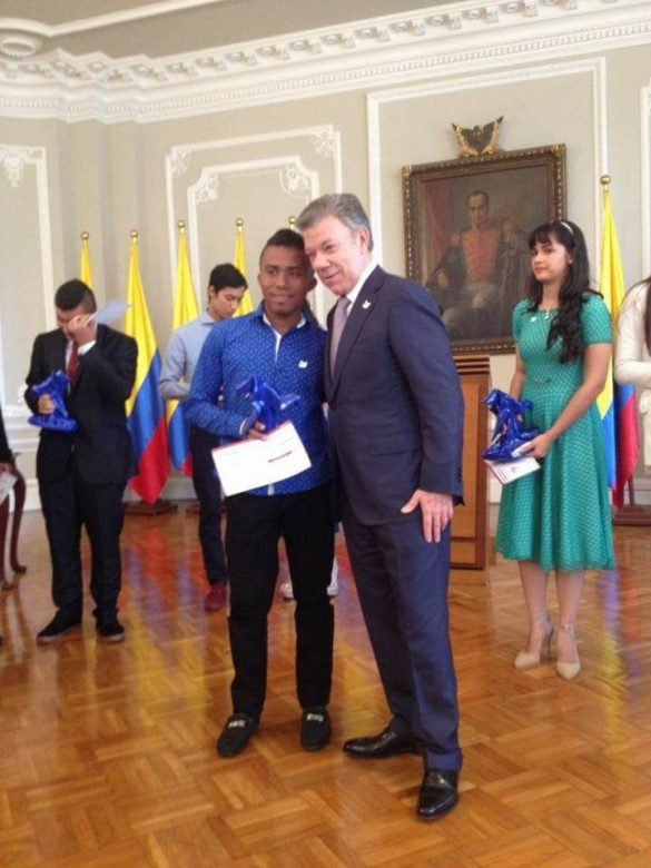 Daiver de Jesús Angulo Montes recibió su reconocimiento de manos de Juan Manuel Santos Calderón, presidente de la República.