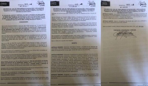 Como medida preventiva, fue declarado día sin moto en el Distrito de Santa Marta entre las 4 de la mañana y 8 de la noche, según consta en el decreto 165 del 03 de junio.