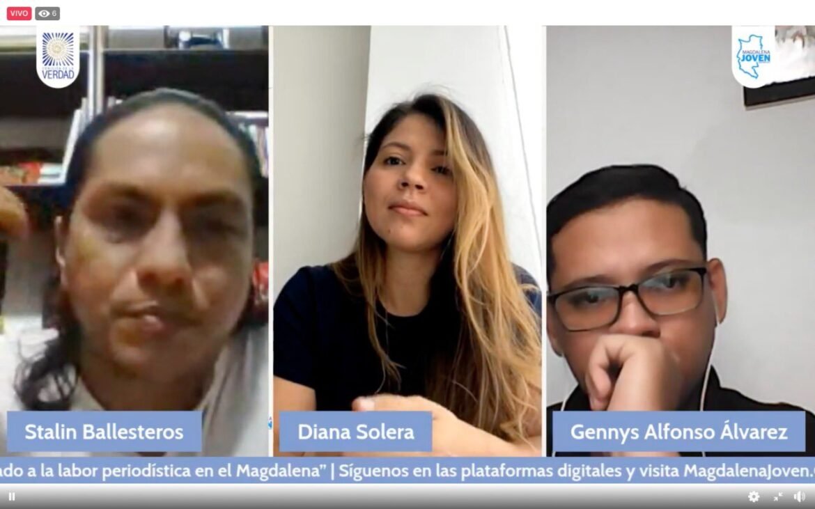 El Movimiento Magdalena Joven lideró el conversatorio ‘Afectaciones del conflicto armado a la labor periodística en el Magdalena’, moderado por el coordinador Territorial de la Comisión de la Verdad, Stalin Ballesteros y con participación de los periodistas Diana Solera y Gennys Álvarez.